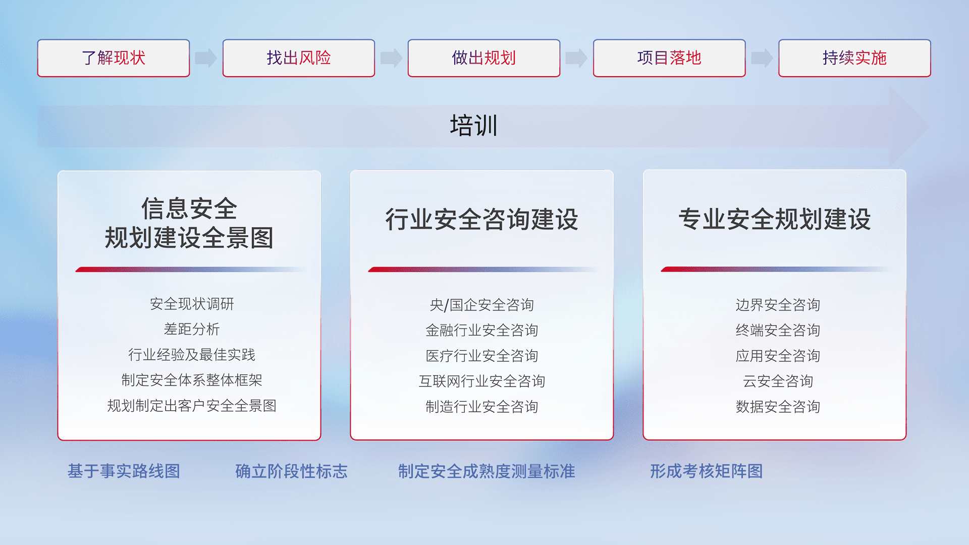 通过专业的法律咨询解读、、、、合规架构体现、、差异化解决方案、、、测试实施支持等服务,,,,为客户量身打造等保合规体系。。。